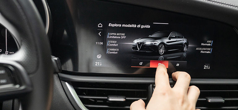لقد أتقنت ألفا روميو جوليا فن إيجاد التوازن بين شغف القيادة العملية وأنظمة القيادة الآلية المتطورة. وتم تجهيز جوليا بأنظمة تراقب بذكاء محيط السيارة من أجل ضمان قدرة التحكم، ومتعة القيادة الاستثنائية في آن.